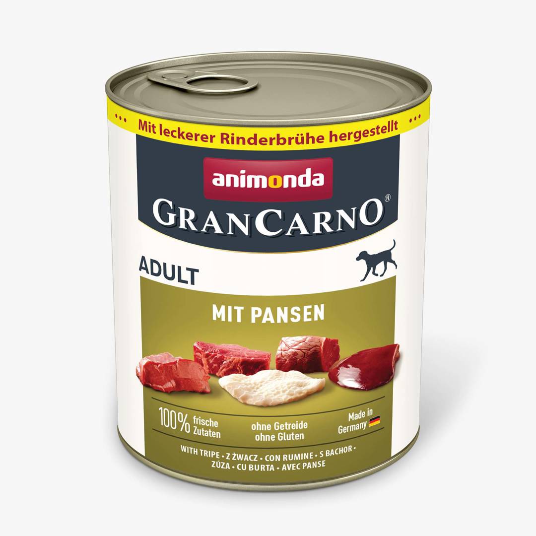 Gran Carno Dog Adult - Пълноценна консервирана храна за израснали кучета, със сърца, 800 гр. Пълноценна храна за израснали кучета от всички породи.· 100% пресни, месни съставки· С парченца месо