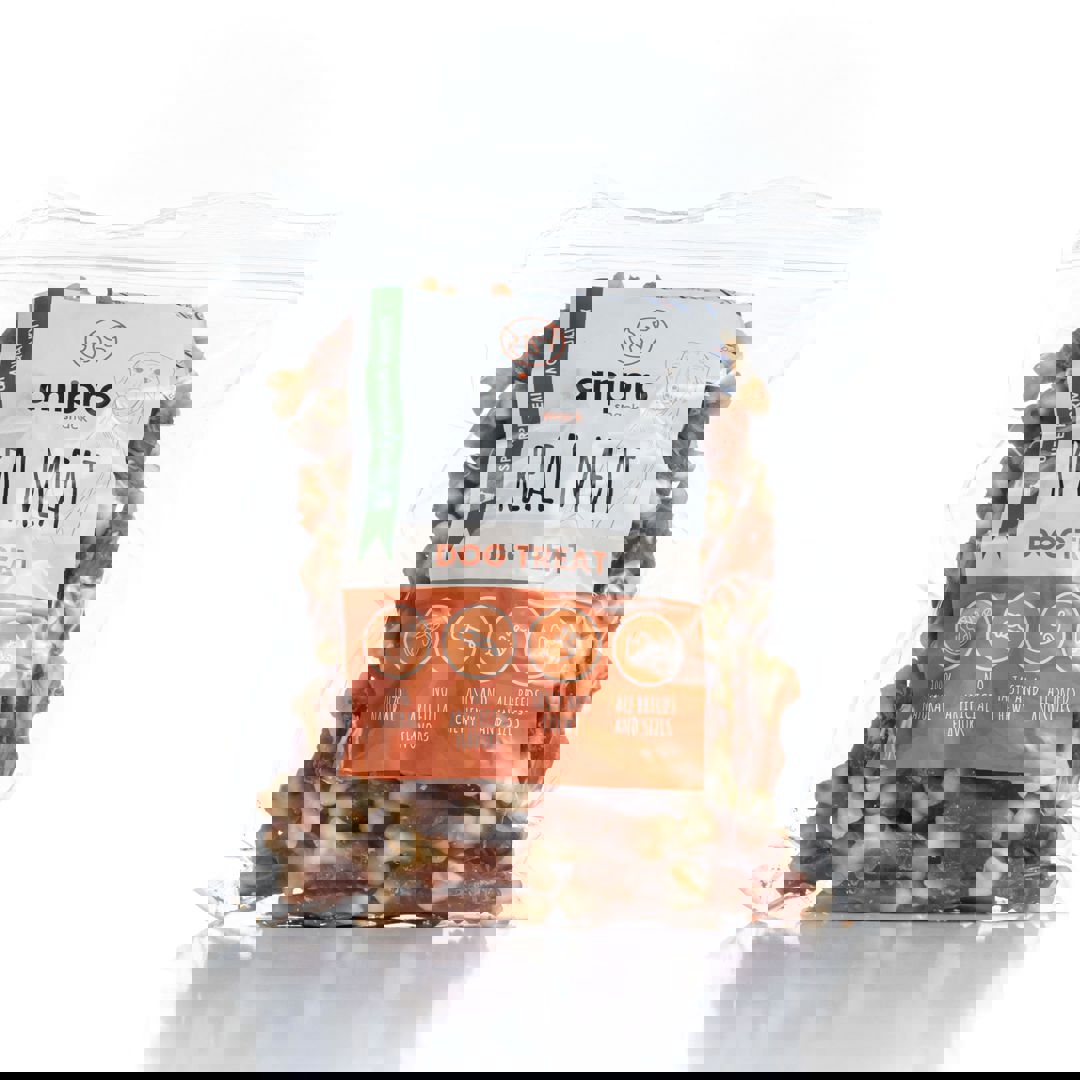 Замразено беззърнено допълващо лакомство за кучета с патешко месо и ябълки. Вкусна здравословна награда. Безглутенова и беззърнена храна. Рецептата за беззърненото лакомство е перфектната комбинация от месо и зеленчуци. Съставките са внимателно замразени, за да се запази изцяло истинският вкус. Без захар, без оцветители, без ароматни подобрители, без консерванти, без ГМО. Съдържание: патешко месо 100%, ябълка 10% Аналитични съставки: Протеин 75%, мазнини 7%, сурова пепел 5%, сурова целулоза 1%. 50 гр.