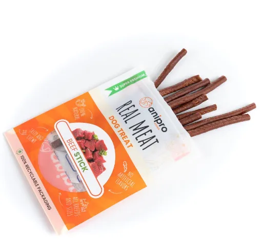 Anipro - Лакомство за кучета, вкусни бутчета с пилешко - 80 гр./2 пакета Цената е за 1 пакет. Минимално количество за поръчка е 2 пакета. Вкусно лакомство за кучета от богатата на видове серия лакомства anipro REAL MEAT: · 100% натурални, от прясно месо · Без изкуствени овкусители и оцветители · Доставят на кучето естественото удоволствие от дъвкането · За кучета от всички породи · Без глутен