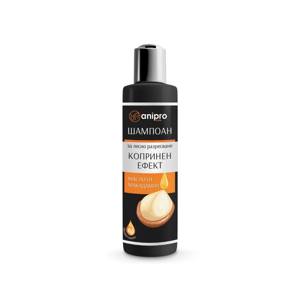 Anipro Lux - Балсам за кучета, копринен ефект за лесно разресване, 200 мл. Anipro Lux балсам за куче, копринен ефект е луксозен балсам с отмиване за лесно разресване. С добавен Хидролизиран Кератин към формулата с Макадамия и Провитамин В5 за още по-интензивно възстановяване на косъма. Козината е лъскава и подхранена по цялата дължина, мека и лесна за разресване, без заплитане. Кучето се чувства по-комфортно.
