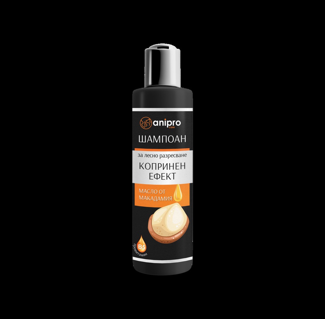 Anipro Care - Балсам за кучета, копринен ефект за лесно разресване, 200 мл. Anipro Care балсам за куче, копринен ефект е луксозен балсам с отмиване за лесно разресване. С добавен Хидролизиран Кератин към формулата с Макадамия и Провитамин В5 за още по-интензивно възстановяване на косъма. Козината е лъскава и подхранена по цялата дължина, мека и лесна за разресване, без заплитане. Кучето се чувства по-комфортно.
