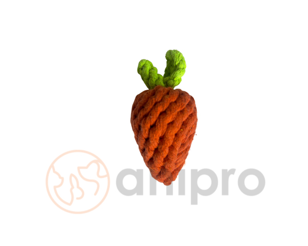 Anipro Play - Въжена играчка за кучета под формата на морков, 20 см. 55 гр. Въжена играчка за кучета под формата на морков от серия anipro play, изработена от 100% рециклиран памук в оранжев и зелен цвят. Играчката е идеално решение за игри, за утоляване на естественото желание за дъвкане и за поддържане на здрави зъби и венци. · Забавна - идеална за дъвчене и игри с хвърляне или дърпане у дома и по време на разходки · Здрава – здрава, гъста плетка със серия от възели за повече здравина