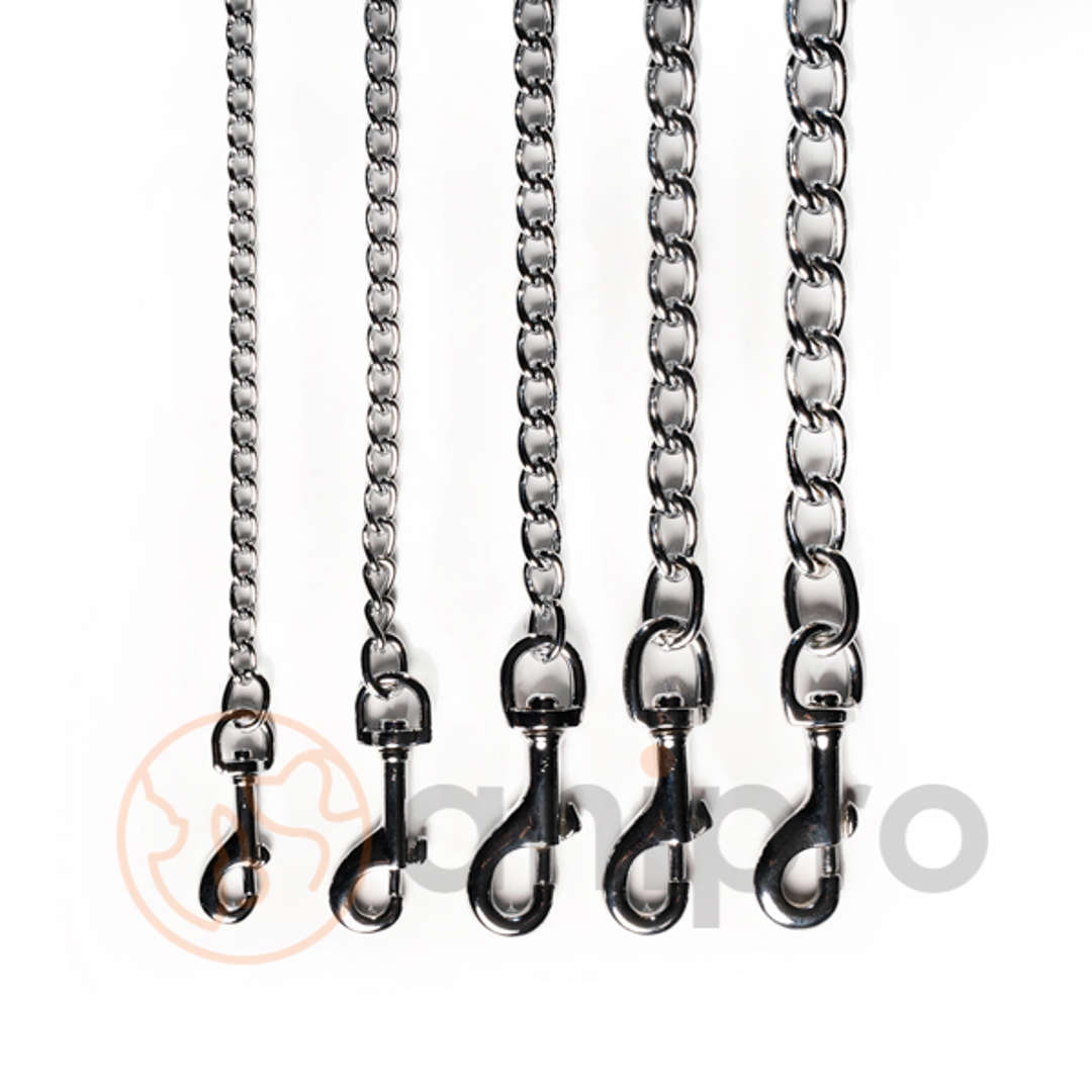 Anipro - Повод синджир за кучета с дръжка черна лента Повод синджир с дръжка от черна лента и карабинкa. МиаЗоо използва вносни синджири, карабинки и обков от висококачествена стомана с хром никелово покритие. Металните изделия само с никелово покритие нямат блясък и металът потъмнява с времето. Дръжката е от полипропиленова лента.