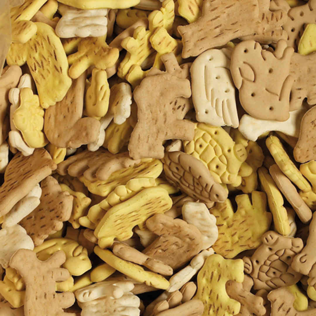 Antos Farm Mix vanilla -Кучешко лакомство бисквити фарм микс ванилия Farm Mix Vanilla са изключително вкусни бисквити за кучета с вкус на ванилия и форма на животинки. Предлагат се в разфасовка от 100 гр, 1 кг и 10 кг. Състав: пшенично брашно Тип "0 ", пълнозърнесто пшенично брашно, глюкозен сироп, тиква, брашно от тиква за вкус, спанак, брашно от спанак, чесън, брашно от чесън на вкус, какао на прах, аромати, растителни масла. Добавки: консерванти, оцветители. Аналитични съставки: Суров протеин 10, 0%; Сурови масла и мазнини 6, 0%; Сурови влакнини 2. 1%; Сурова пепел 3, 0%; Влага 11, 0%; Въглехидрати 67, 8%.