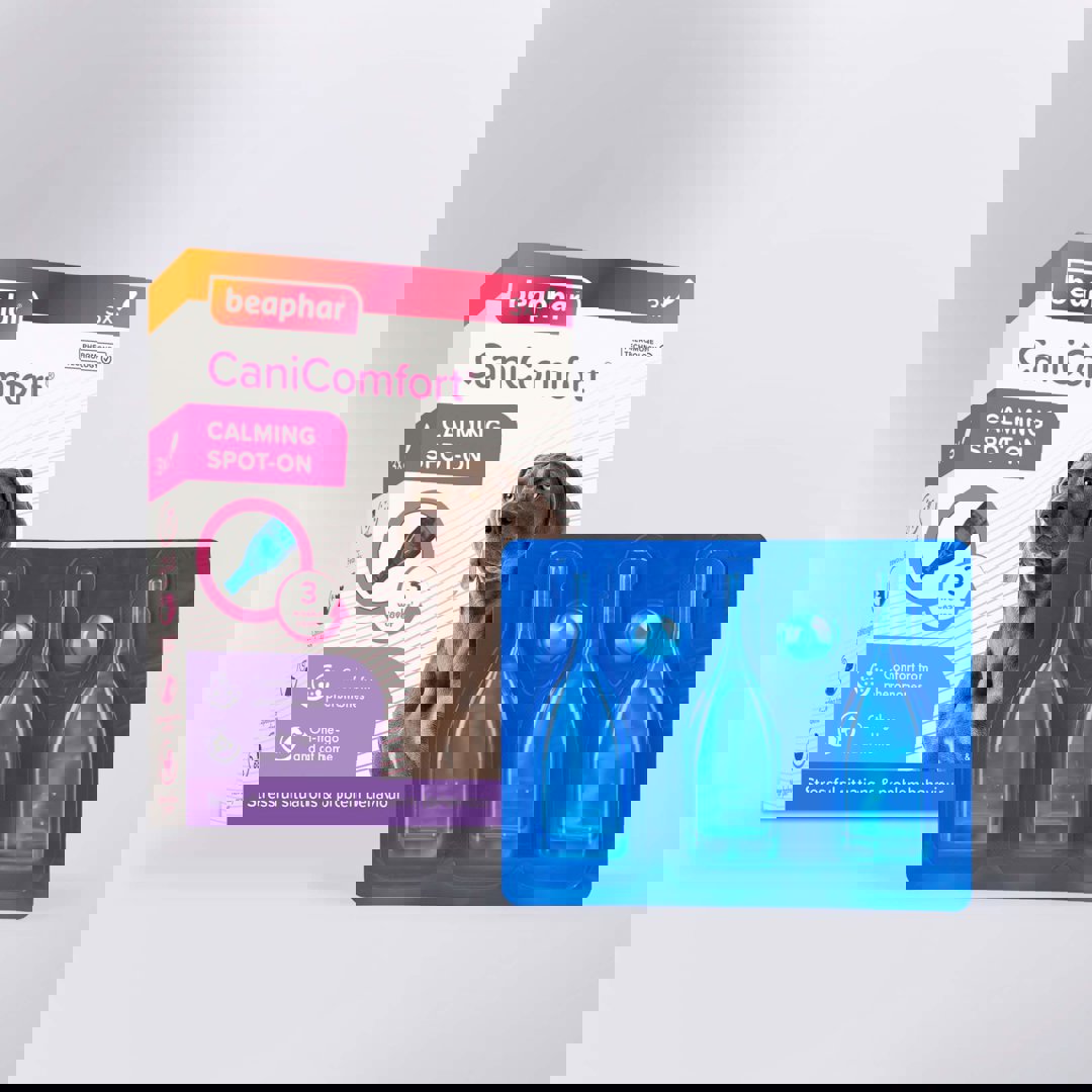 Beaphar Calming Spot On - Успокояващи пипети/ капки за кучета - 3 пипети Beaphar Calming Spot On са успокояващи пипети по 3 бр в опаковка. Натурални, безопасни и с грижа за домашните любимци и природата! Обща информация: Както ние, така и животните могат да изпитват страх, безпокойство, нервност. Стресовите ситуации могат да предизвикат промяна в поведението на домашните любимци. При някои кучета и котки само при вида на транспортната чанта може да се предизвика паника. За други пътуването в кола или посещение при ветеринаря е ужасяващо. По време на празниците пък има други стресиращи събития като фойерверки, много непознати хора на партито. През годината се случват гръмотевични бури. Появата на нов член на семейството, човек или животно, също може да бъде стресиращ фактор.