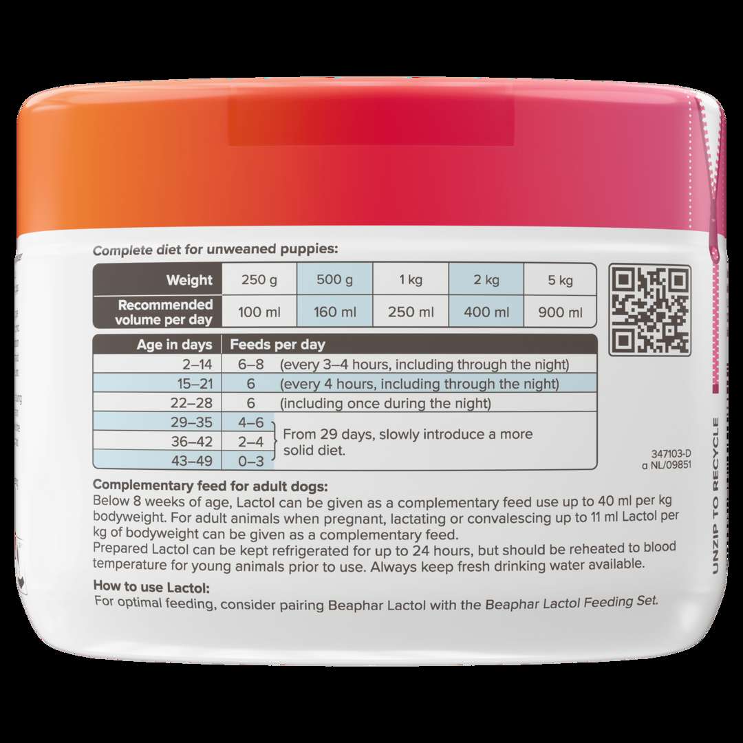 Lactol dog Кравето мляко не осигурява необходимото количество от протеини и мазнини, изисквани от малките кученца. Затова Beaphar Lactol dog осигурява правилния баланс на мазнини и всички необходими витамини и минерали, за да им дадете най-доброто начало в живота. Благодарение на много специален процес, протеинът се предлага в много смилаема форма и е много по-полезен за кученцата. Beaphar Lactol dog също съдържа богатство от есенциални аминокиселини, витамини и микроелементи. Beaphar Lactol dog е формулиран в съответствие с най-новите научни постижения в областта на храненето на кучето.