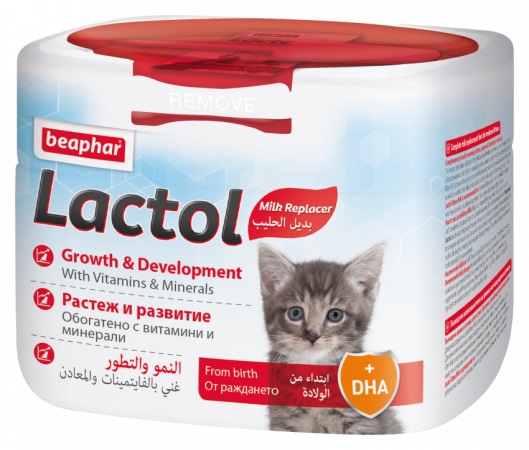 Beaphar Lactol - Сухо мляко за котенца 500 гр. Специално формулиран за: Осиротели животни; Многобройно котило, което майката не може да изхрани; Като помощно средство за отбиване; Болни или оздравяващи домашни любимци; Подходящо също за бременни. През 2018 г марката млека за домашни любимци Lactol навърши 100 години - препоръчвано от поколения развъдчици: Направено от истинско прясно мляко; Ултра филтрирано; Нискотемпературно изпаряване за запазване на полезните съставки; С DHA, съдържащ се в майчиното мляко (важен елемент за градежа на мозъка и възможността за разбиране и поддаване на обучение); Лесно смилаем суроватъчен протеин; Без протеин от грах и пшеница; Без рибно масло, което предизвика болки в стомаха; Без добавени животински мазнини, заменени с кокосово масло; Хомогенизирано и лесно за миксиране, дори ако е студено. Lactol Kitten Кравето мляко не осигурява необходимото количество от протеини и мазнини, изисквани от малките котенца. Beaphar Lactol Kitten се грижи за правилния баланс на мазнини и всички необходими витамини и минерали, за да дадете най-доброто начало в живота. Благодарение на много специален процес, протеинът се предлага в много смилаема форма и е много по-полезен за котенцата. Beaphar Lactol Kitten също съдържа богатство от есенциални аминокиселини, витамини и микроелементи. Формулиран е в съответствие с най-новите научни постижения в областта на храненето на котките и е по-подходящ за нуждите на котенцата, отколкото Beaphar Lactol Puppy поради следните причини: • Високи нива на протеин; • Високо съдържание на витамин А; • Съдържа таурин и биотин.