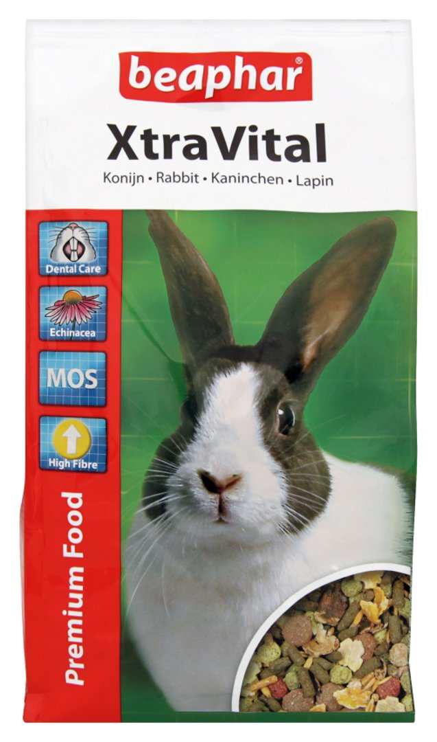 Beaphar Xtra Vital- Пълноценна храна за зайци от най-високо качество 1 кг. Пълноценна храна за зайци от най-високо качество. Отличава се от другите храни с изключително високата си усвояемост. Съдържа всички необходими съставки, витамини и минерали, включително лесноусвоими минерали с белтъчна обвивка (хелатирани минерали). Храната е богата на протеини и влакнини, които стимулират оптимално храносмилане. XtraVital е с ниско съдържание на мазнини за предпазване образуването на мазнини около вътрешните органи. Прибавеното растение Echinacea увеличава устойчивостта срещу болести. XtraVital осигурява жизнени и игриви зайчета с красива и здрава козина. Съдържание: висококачествена люцерина, царевица, грах, екструдирана пшеница, бобови люспи, рожкови, овес, соя, моркови. Храната е пакетирана в инертен газ, което гарантира запaзването на вкусовите качества до крайния срок на годност! Предлага се в опаковка от 1 и 2.5 кг. Производител: Beaphar B.V.,Холандия