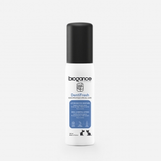 Дентален спрей за уста за кучета и котки. Освежава устната кухина, предотвратява образуването на зъбен камък като същевременно го разгражда. Отстранява лошия дъх. Пулверизирайте върху зъбите и в устната кухина на животното.