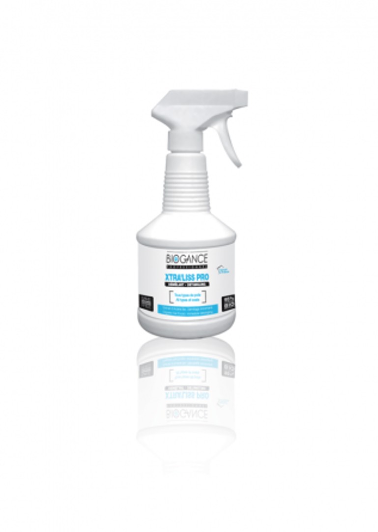 Biogance Gliss Liss Pro Spray Finishing Detangler - Професионален спрей за домашни любимци за лесно разресване ,500 мл. С масло от жожоба С UV защита Без детергенти Без оцветители Спомага за отстраняване на възлите, подобряване на състоянието и изглаждане на козината, като същевременно допринася за нейната сила и блясък Начин на употреба: Преди къпане: Разклатете преди използване. Напръскайте директно възлите, изчакайте 2 минути, разрешете срещу посоката на косъма, след което разрешете нормално за отстраняване на възлите. След къпане: Напръскайте по време на разресване от разстояние 30см. за подхранване и изглаждане на козината. Опаковка: 500мл.
