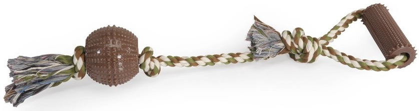 Anipro - Въжена играчка за кучета Въжена играчка за кучета с 2 възела от серия anipro play, изработена от 100% рециклиран памук в сив и оранжев цвят. Играчката е идеално решение за игри, за утоляване на естественото желание за дъвкане и за поддържане на здрави зъби и венци. · Забавна - идеална за дъвчене и игри с хвърляне или дърпане у дома и по време на разходки · Здрава – здрава, гъста плетка със серия от възели за повече здравина