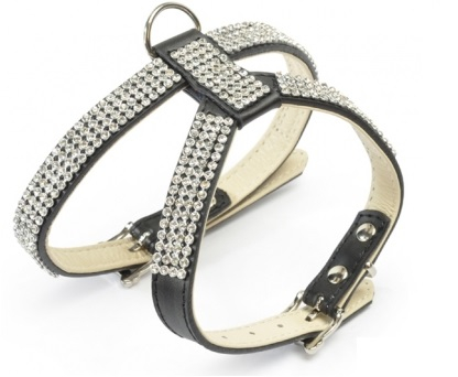 Кожена сбруя и каишка с кристали.
