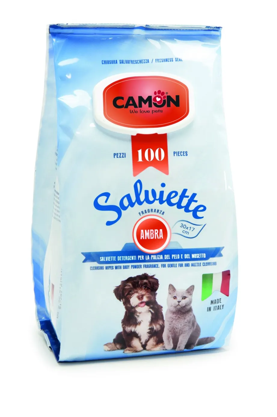 Camon Cleaning wipes Talc - мокри почистващи кърпички с талк за кучета и котки Винаги дръжте тези кърпички близо до себе си! Вкъщи или навън, те са идеално решение за почистване козината и лапите на Вашия домашен любимец, да контролирате миризмите, да почистите неговите уши и лице. Със своята естествена формула, те подхранват и предпазват козината.Начин на употреба: отворете пакетчето и извадете една кърпичка. Нежно почистете животното. Винаги затваряйте пакета след употреба. Размери: 30x20cm Опаковка: 40 бр.
