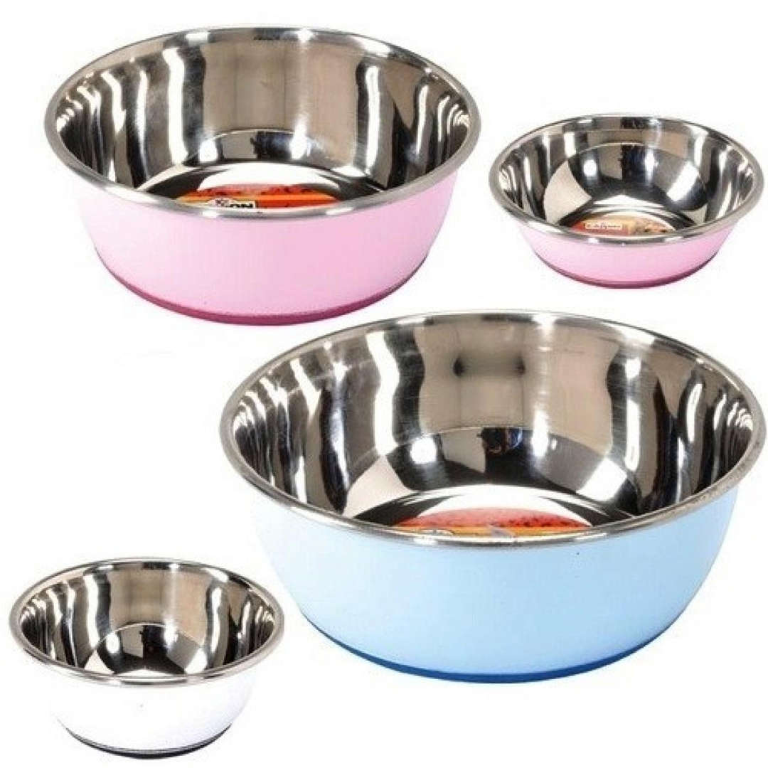 Anipro Bubbles No Slip - Метална купа за храна и вода за кучета и котки Удобна и практична купа за храна и вода от метал с гума и модерна графична декорация - серия anipro Bubbles. Подходяща както за котки, така и за малки породи кучета. Изработена от комбинация от висококачествен инокс и гума с красив стилизиран десен с кръгли форми. Гумената основа предпазва от приплъзване на купата и надраскване на пода.