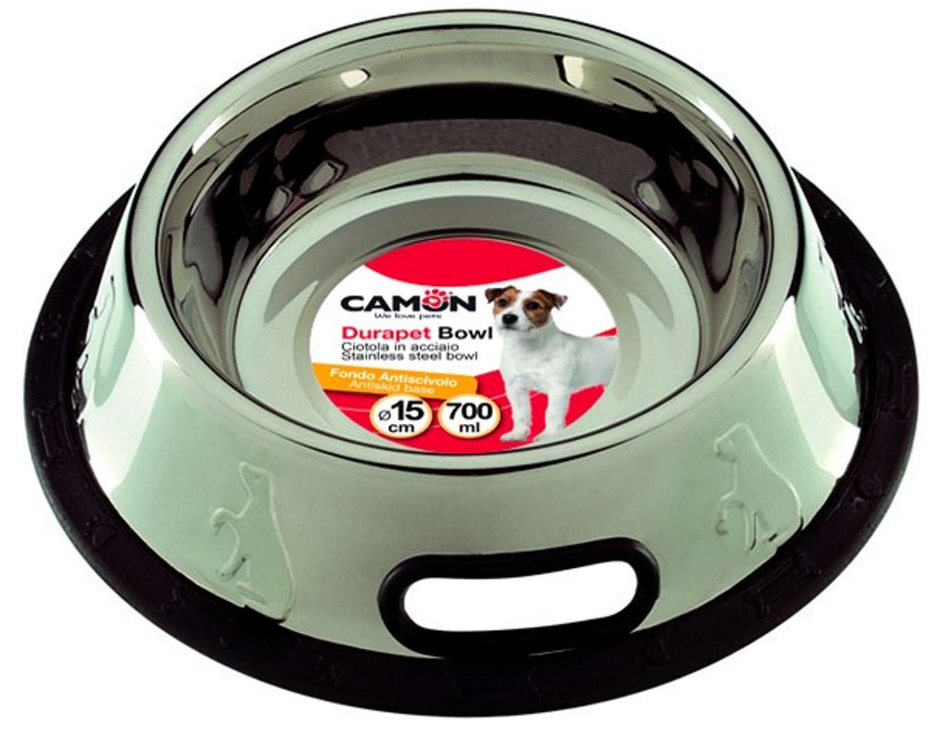 Camon Stainless steel bowl - неплъзгаща метална купичка с кант за вода и храна за кучета 500 мл.