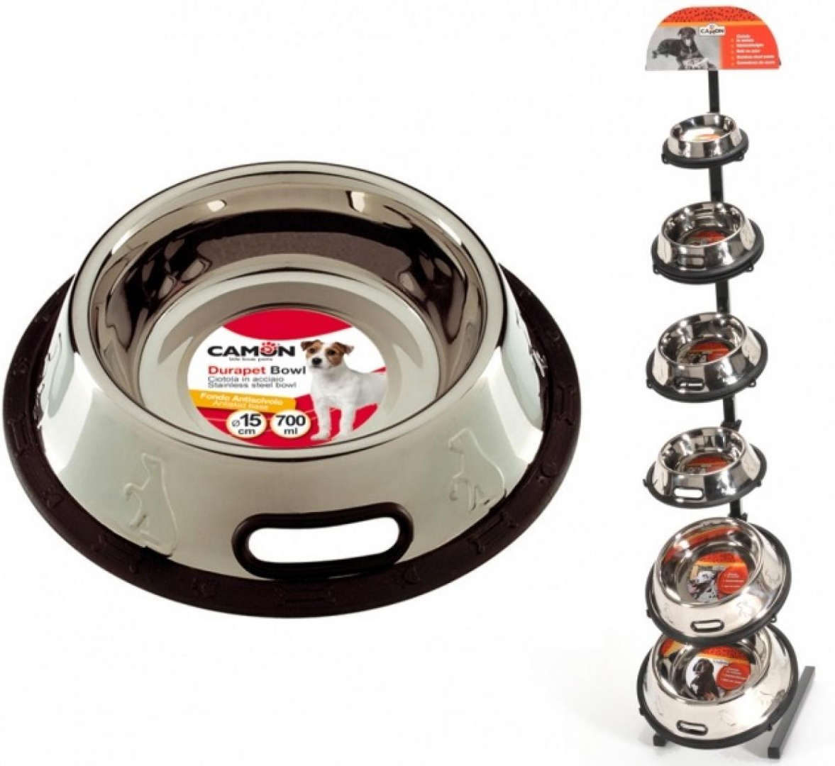 Camon Stainless steel bowl - метална купичка с кант за вода и храна за кучета