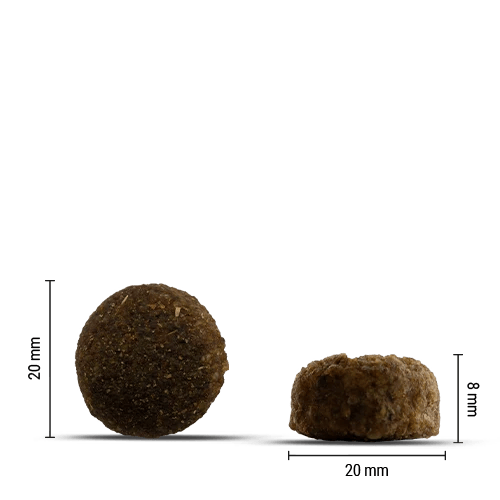 Контрол на теглото. Намаляването на протеините и мазнините подпомага развитието на оптималното характерно телесно тегло на породата. Добавените фибри (сурови влакнини) подпомагат мобилността и насищането на кучето ви.