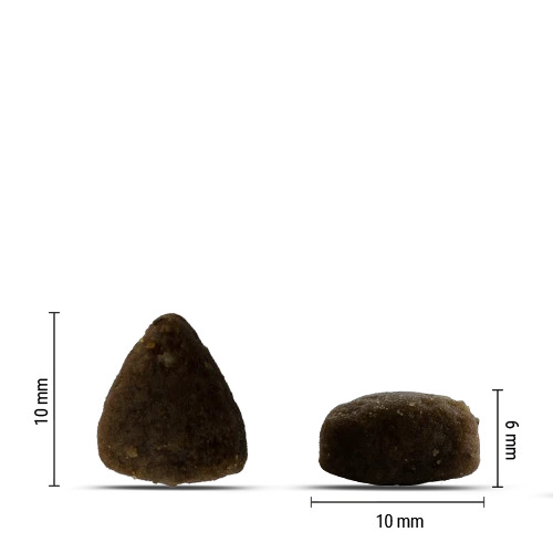 Съдържание: Протеин от домашни птици (сушен, 24%), царевица, сорго, протеин от говеждо месо (сушен, 5%), пулп от суровo цвекло (отстранена захар), хидролизиран протеин, грах (2%) , ленено семе (1%), сьомга (0.5%), дрожди (изсушени, 0.5%), цикория (суха, 0.5%), калиев хлорид.