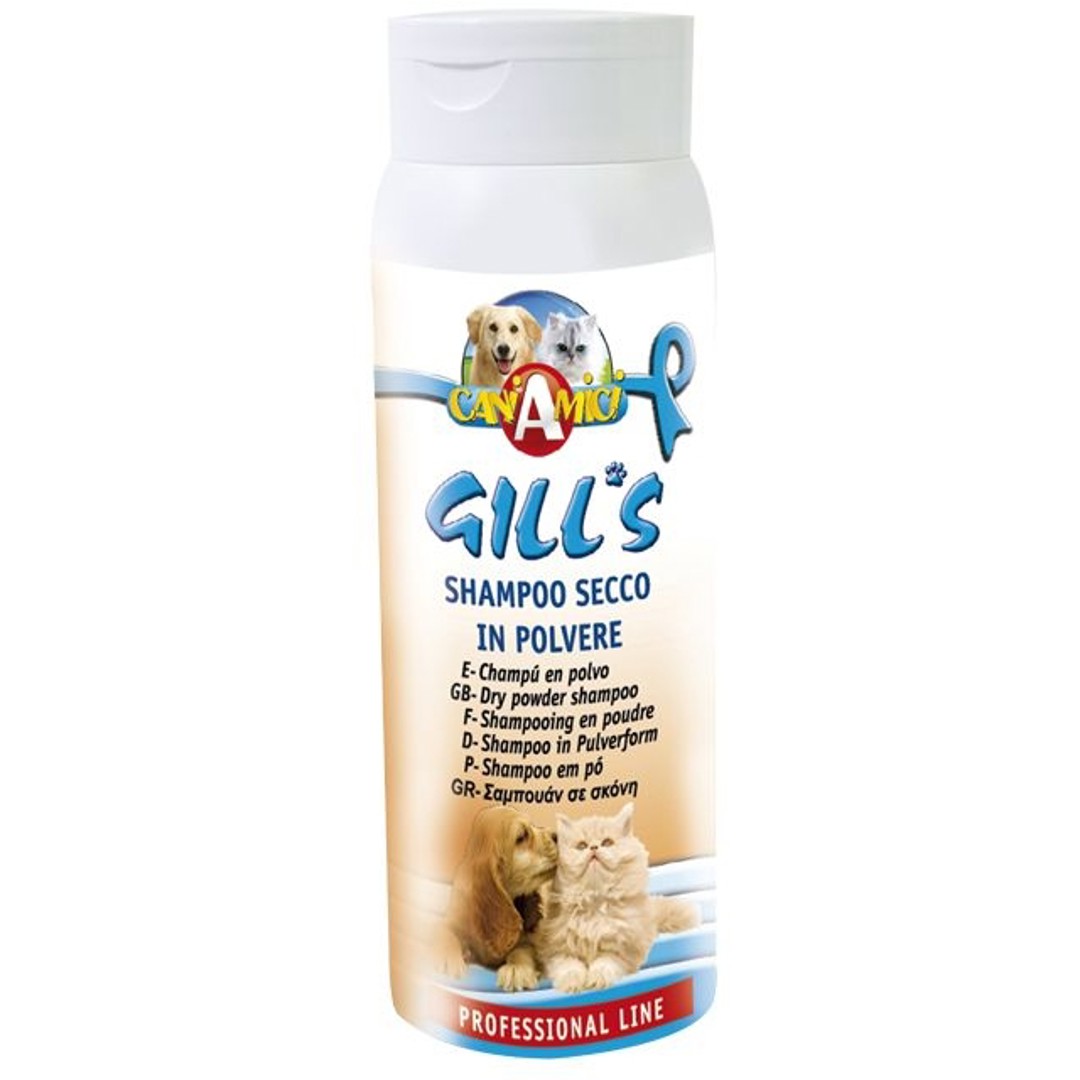 Croci Gill's Dry Powered Shampoo е сух шампоан  пудра за кучета и котки. Подходящ за почистване на козината в зимните месеци.  Придава на козината чистота и блясък без отмиване.