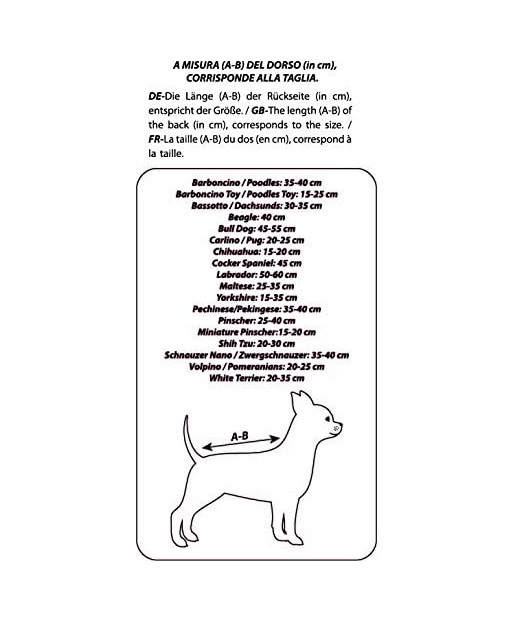 Croci Camicia con catene Chains - Дрешка за кучета - Еластична обиколка - Ластик за крака - Регулиране на велкро плат Как да изберем размера на козината за вашето куче? За да изберете правилния размер на тениската, дъждобран или палто на кучето, е необходимо да измервате със сантиметър в ръка разстоянието от холката до опашката по гърба на вашето куче, т.е.разстоянието в сантиметри от врата на кучето до опашката. Измерването трябва да се извърши от основата на шията до кръстовището на опашката. Когато измервате, уверете се, че кучето стои правилно и е изправено на лапите си. Въз основа на направеното измерване изберете най-правилния размер на козината. Последната снимка на продуктовия лист показва примерно изображение, което може да помогне за правилното измерване на гърба на кучето. Пример: Гърбът на кучето Ви е с размери 35 см, а козината, която искате да купите, е опакована в размери 34 см и 38 см: Ще трябва да поръчате размер 38, така че козината да пасва правилно на кучето Ви, тъй като 34-те биха били малки. Размер - 25 см.