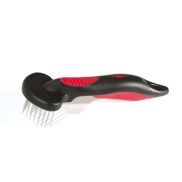 Camon Fitti тример за кучета и котки Специално проектиран за професионална употреба. Този вид нож се използва за отстраняване на стари косми от козината на кучето, за да се подстригват и оставят по-здрави и блестящи. Острието на ножа е изработено от висококачествена стомана, за да осигури максимална точност. Неговата ергономична пластмасова и гумена дръжка го прави много удобен, дори когато се използва дълго време. Ножът за оголване Camon се предлага в две версии: острието с фини зъби е подходящо за главата и ушите на кучето, докато широкозъбият е идеален за грижа за гърба и долната част на тялото.