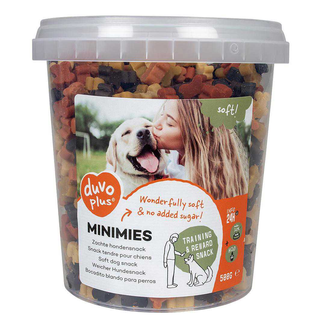 Duo Plus Soft Minimies - Меки лакомства/ награду за кучета, 500 гр. Меки закуски за кучета Идеален като награда по време на тренировка Затваряща се опаковка За кучета на възраст над 3 месеца Без добавени захари