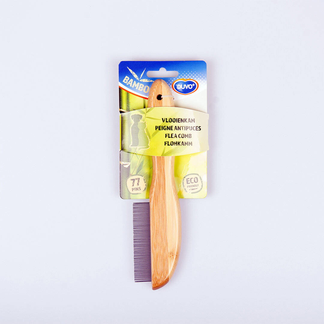 Duvo Plus Flea Comb - Бамбуков гребен за късокосмести кучета и котки, премахва бълхи и паразити 77 зъбци 21 см.