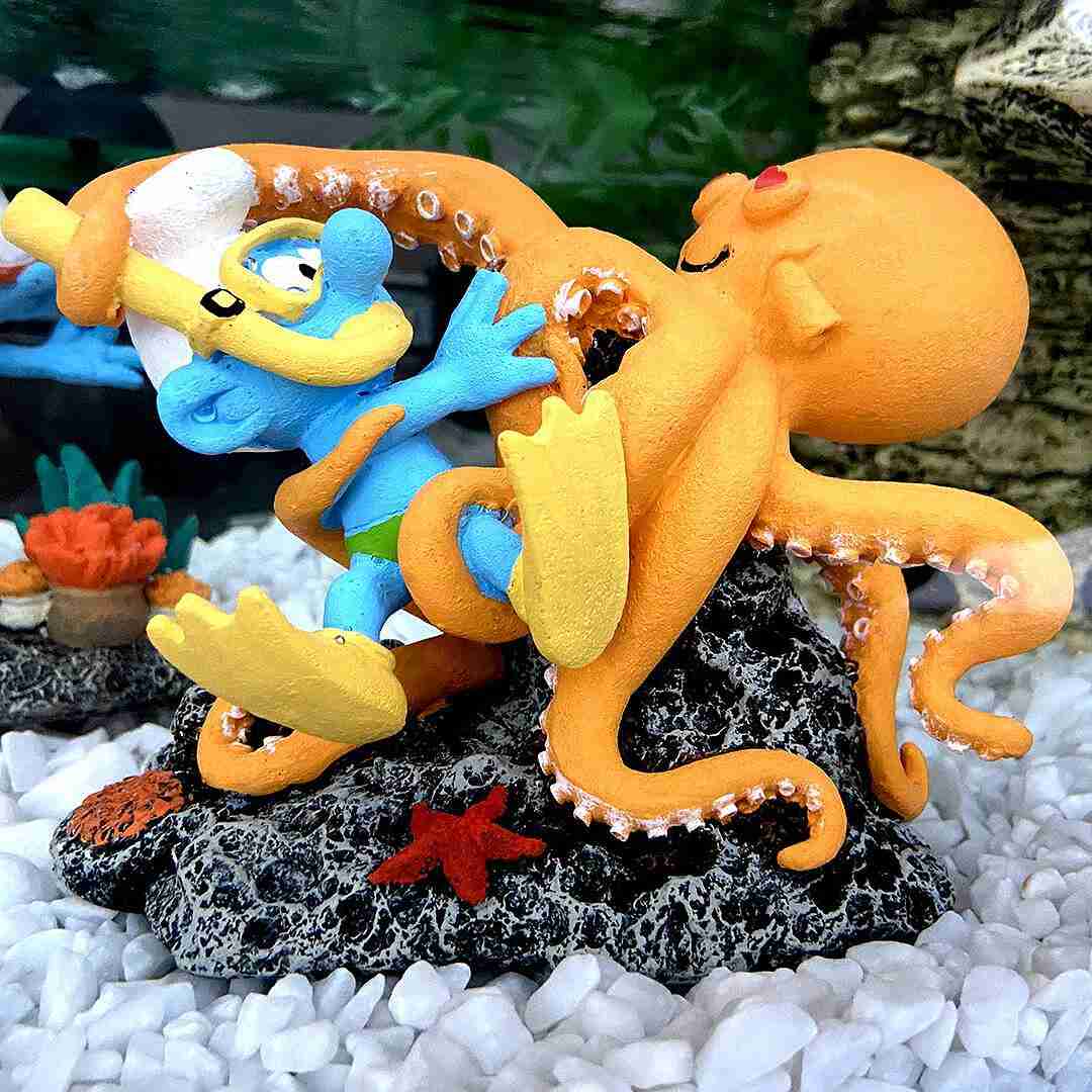 Duvo Plus Smurfs - Декорация за аквариуми във форма на октопод, 13,4x7,9x9,8 см. -Страхотна смърфинг декорация -Много детайлен, изработен от висококачествена полиестерна смола -Без токсини и PH неутрален, не влияе на биологичния баланс -За солени и сладководни аквариуми -Моля, обърнете внимание: Внимателно извадете декорацията от кутията и я изплакнете с хладка вода 13,4x7,9x9,8cm