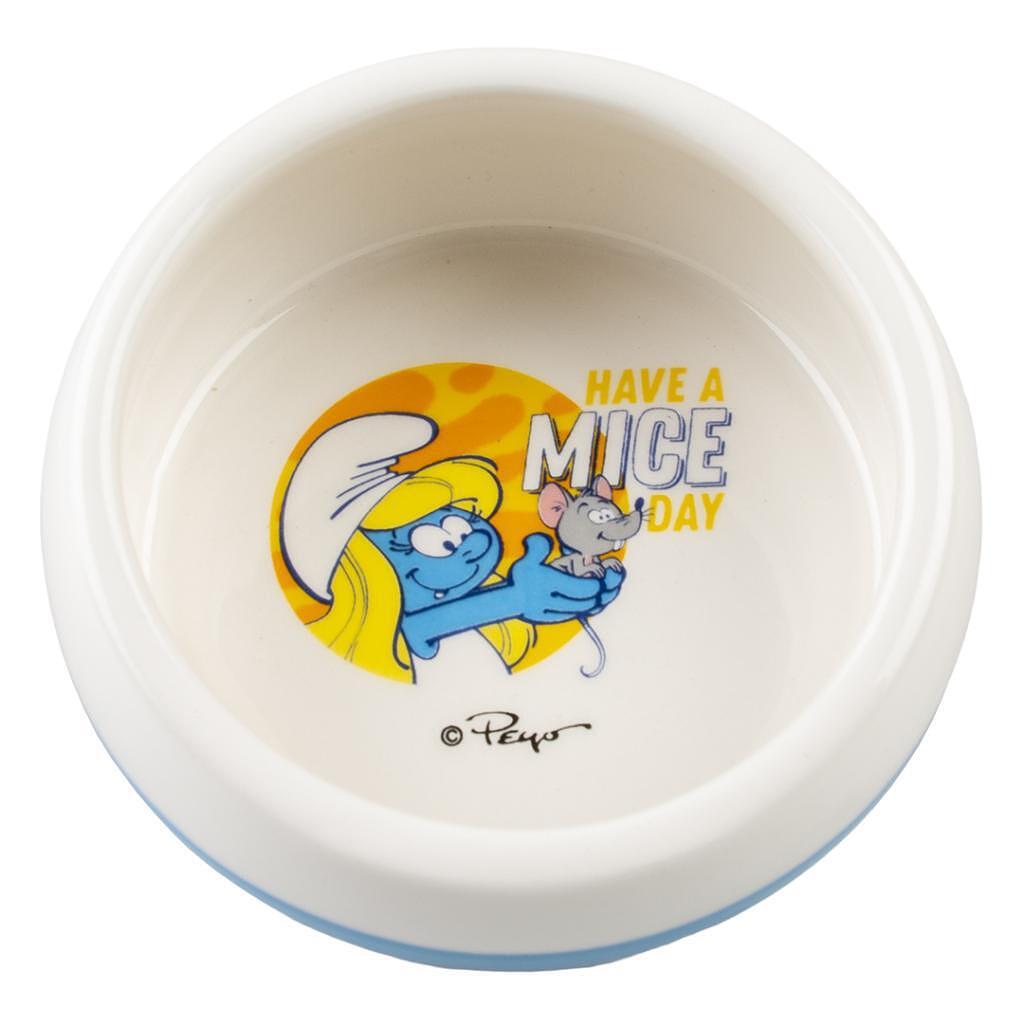 Duvo Plus Smurfs - Керамична купа за храна и вода за гризачи, 320 мл. Купа за храна и напитки с принт на смърфове Висококачествена глазирана керамика Силен и стабилен За мокра храна, суха храна или вода Може да се мие в съдомиялна машина Налични размери на опаковката | 320ml - 11,3x11,3x7,6cm | бяло/синьо