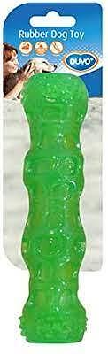 Duvo Plus TPR Stick Squeaky - Здрава, плаваща TPR играчка за кучета, почиства зъбите и масажира венците, 18 см. Duvoplus TPR Stick Squeaky е много издръжлива и здрава играчка за кучета. Благодарение на лекото тегло играчката плува и вашето куче може да се забавлява с нея във и извън водата. Релефният модел почиства зъбите с лекота по време на игра. Плаваща играчка