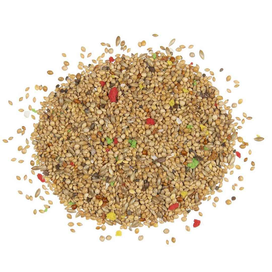 Смес от естествени съставки, внимателно подбрани и обогатени с витамини, която осигурява на тропическите финки всичко необходимо през всеки период от годината Състав: Жълто просо Американско просо (Panicum) Канарено семе Червено просо Бисквити Семена от нигер Ленено семе