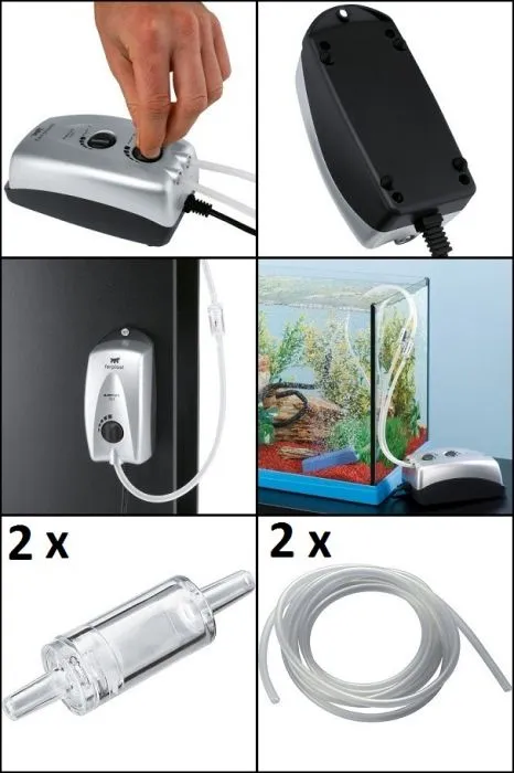 Ferplast - AIRFIZZ 100 Помпа за въздух - опаковка 1 брой За аквариуми до 100 литра Регулируем въздушен поток с една дюза (100л/ч) Гумени крачета за намаляване на вибрациите Ниска консумация на енергия (3W) Размери: Широчина - 6,3см. Дължина - 12,4см. Височина - 5,9см