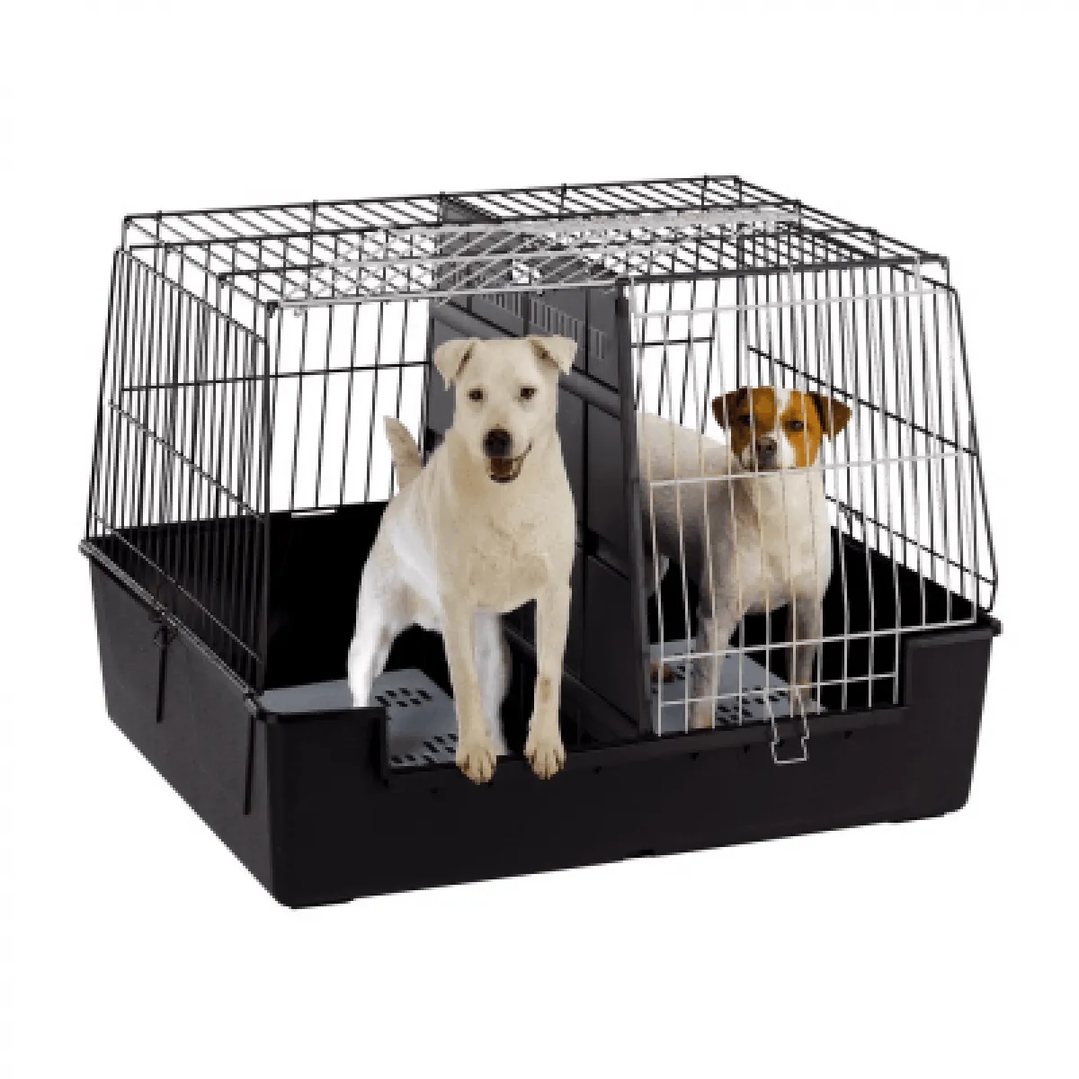 Duvo Plus Dog Crate 2Doors Plastic Tray L - Сгъваема метална транспортна клетка за кучета с две врати Сгъваема транспортна клетка за кучета със стабилна метална конструкция; с изваждащо се пластмасово дъно за лесно почистване; дръжки за лесно пренасяне. Размер L 92x57x64см. * с пластмасова тава , лесна за почистване * черна