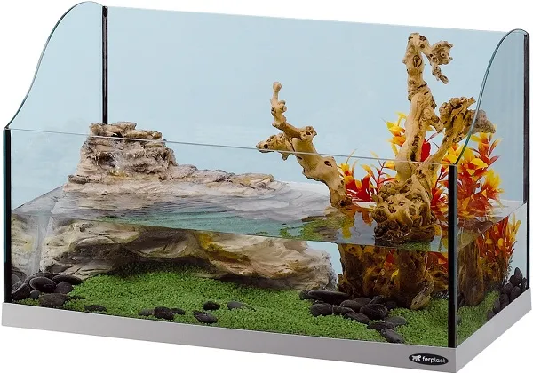 Ferplast - Haiti 50 Аквариум за костенурки - опаковка 1 брой Дебелина на стъклото 4мм. Стабилна основа Включена декорация (остров с палма) Размери: Широчина - 51,5см. Дължина - 27см. Височина - 18,5см.