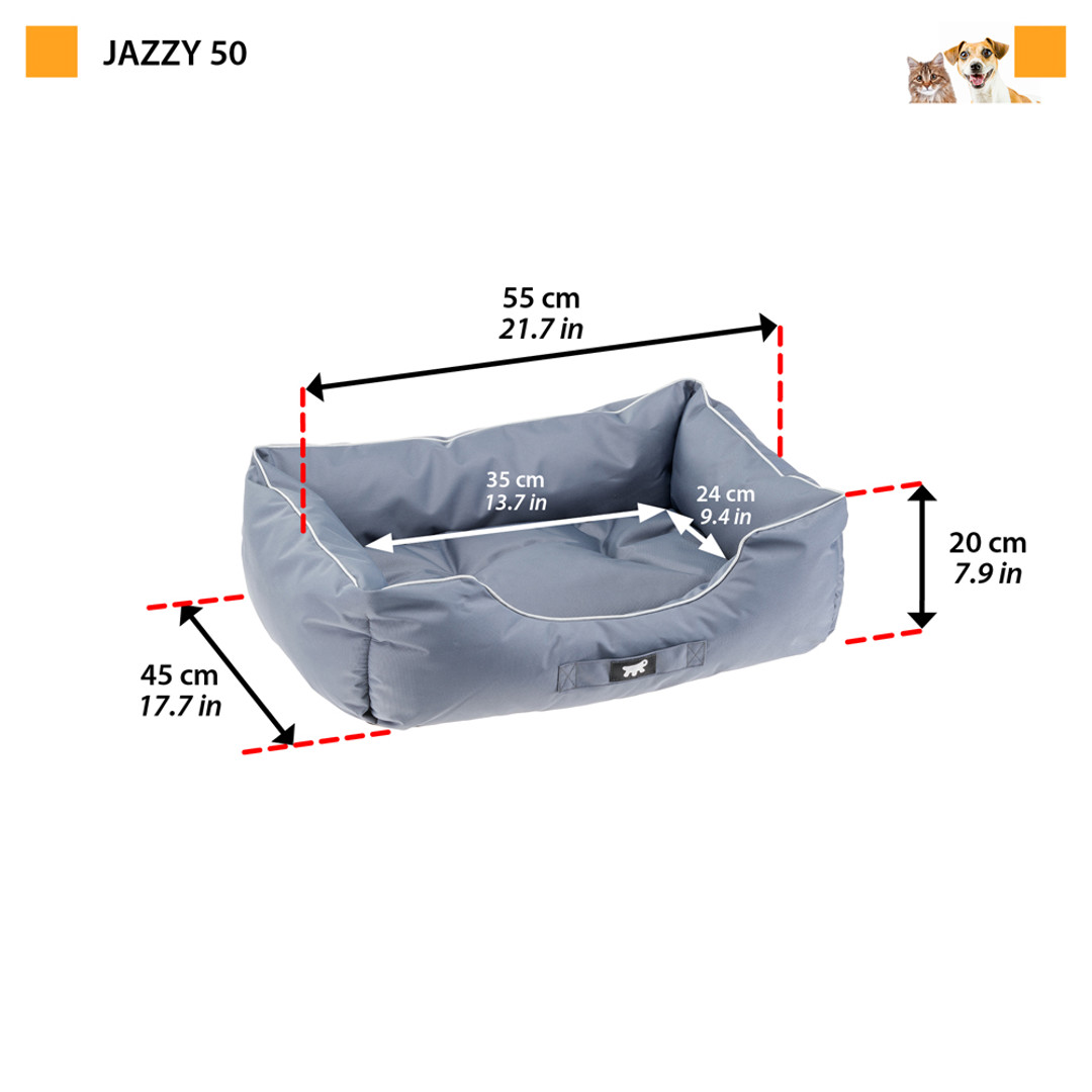 Ferplast - Domino 60 Легло за куче Подходящо за: кучета и котки Изработено от 100% памук Подвижна възглавница Машинно пране при ниска температура Размери: Широчина - 46см. Дължина - 60см. Височина - 20см.