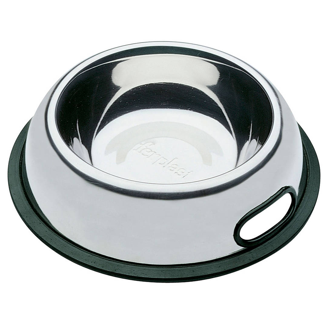 Купa за храна или вода за кучета и котки. Изработенa от неръждаема стомана - здравa и устойчивa, с неплъзгаща се гумена долна част. Предлага се в 5 различни размери: 0.2, 0.5, 0.9, 1.5 и 2.5 л. Размери: 25,4 x 5,8 см Вместимост: 900 мл