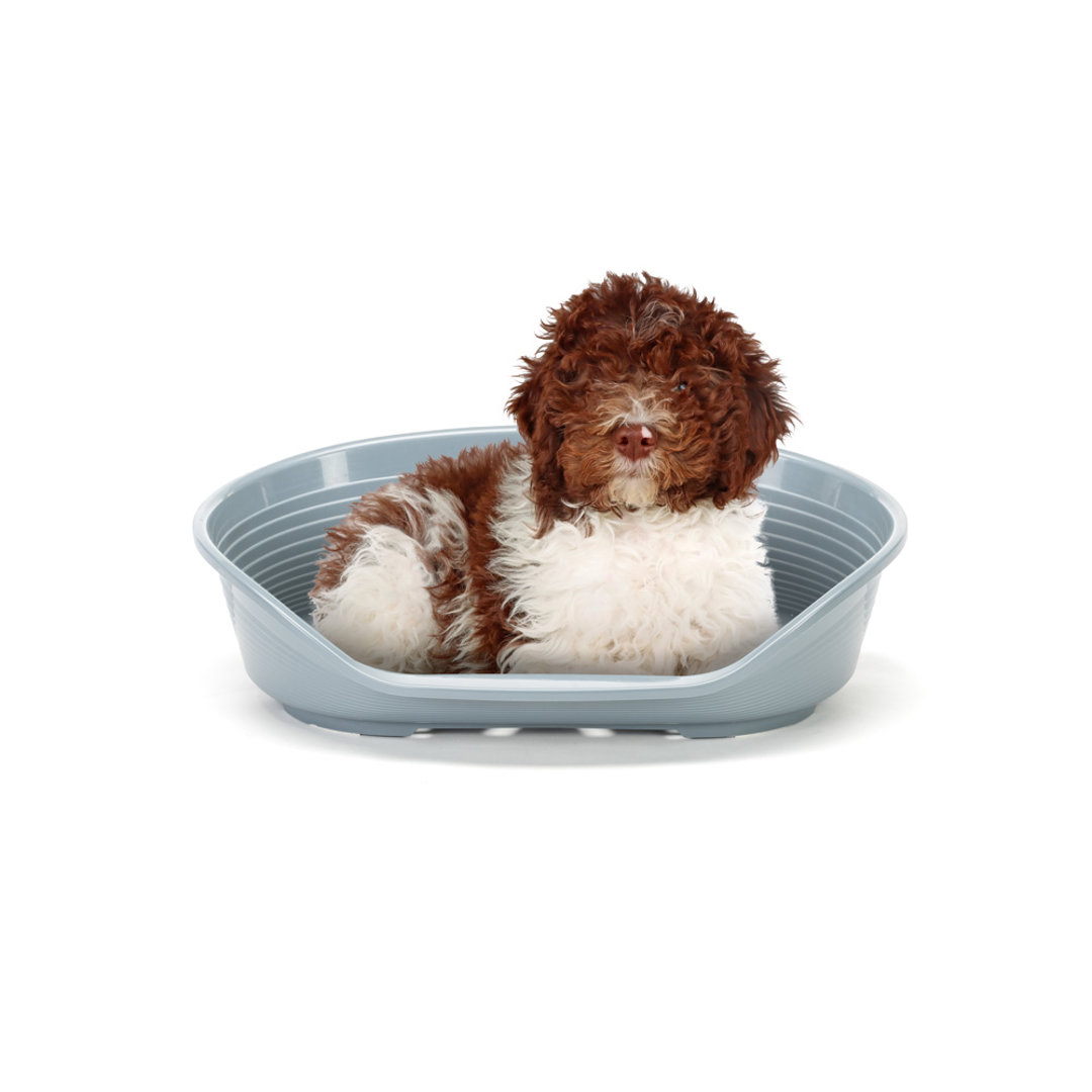 Siesta Deluxe 8 dark grey е уютно пластмасово легло за котки и кучета. Дизайн със заоблена форма: стените са високи и удобни, а отпред е ниско. Не се пързаля, благодарение поддържащите крачета. Основата има специални прорези позволяващи правилното преминаване на въздух. Предлага се в шест размера за кучета от всички големини. Модели 2, 4, 6 и 8 са особено подходящи и за котки. Широка гама цветове: черно, сребристо, бяло, бордо, розово или кафяво. Можете да добавите кучешка памучна възглавница, подходяща за всички сезони от гамата Relax или двустранна с една страна от памук и друга от топъл плюш. Размери: 74 x 48 см Цвят: Тъмно сив