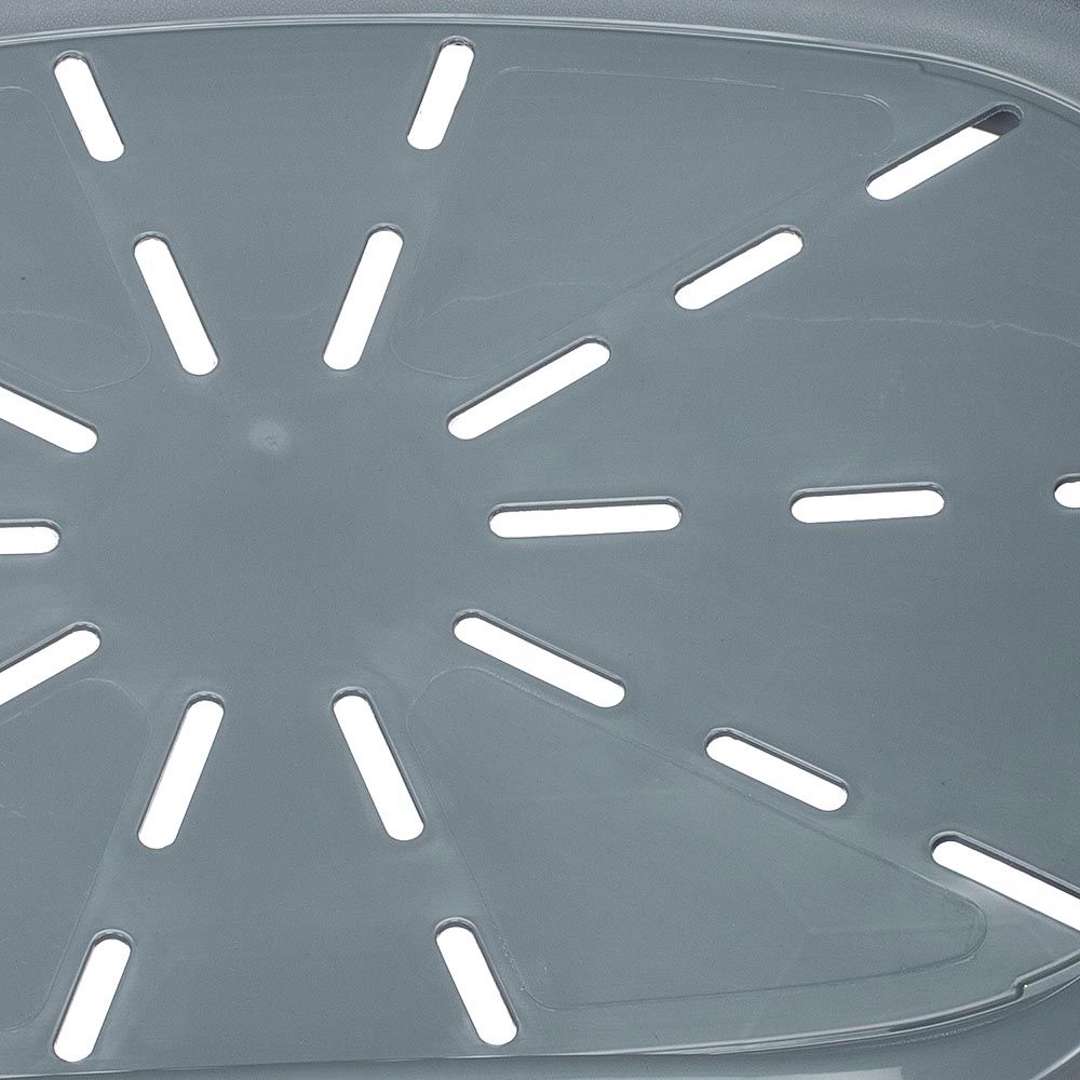 Дизайн със заоблена форма: стените са високи и удобни, а отпред е ниско. Не се пързаля, благодарение поддържащите крачета. Основата има специални прорези позволяващи правилното преминаване на въздух.