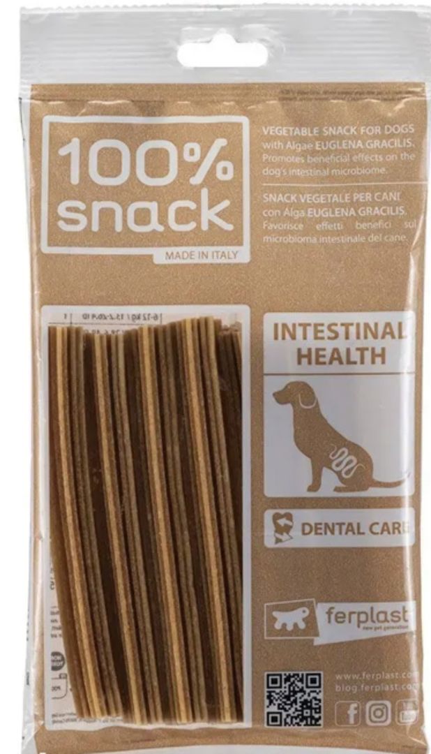 Ferplast е водещ европейски производител с над 50 години опит в създаването на иновативни и безопасни продукти за домашни любимци. Всички лакомства от серията 100% Snack са разработени в сътрудничество с ветеринарни специалисти, без добавена захар и оцветители, с акцент върху храносмилателното и зъбното здраве.