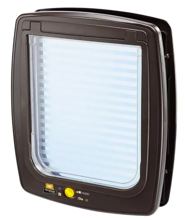 Flamingo Cat door - Вратичка за вграждане за котки, 19.2/20 см. - кафява размери 192 x 200 mm - проход 165 x 174 mm - 4-степенно заключване: само отвътре - само отвън - заключено - отключено ширина 2см