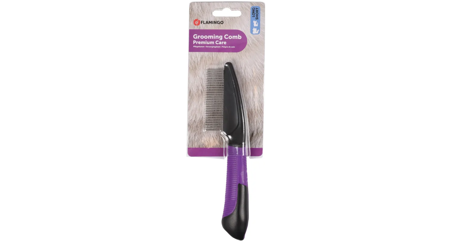 Duvo - Двуредов гребен за разплитане на козината за кучета и котки,35+18 зъба Отстранява възли, мърсотия и мъртва козина лесно и бързо Въртящи зъби предотвратяват дразненето на кожата Ергономична дръжка от еластична TPR гума Подходящ за кучета и котки със средно дълга до дълга козина За здрава и лъскава козина