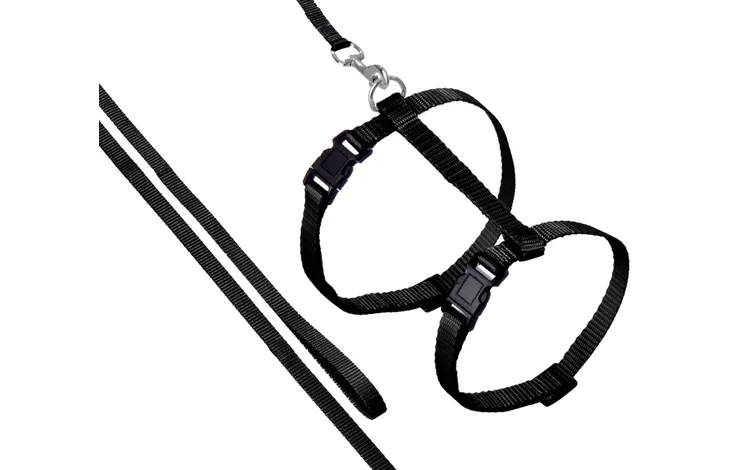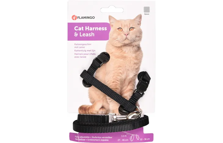 Flamingo Cat - Комплект регулируем нагръдник с повод за котки Повод дължина - 110 см - черен