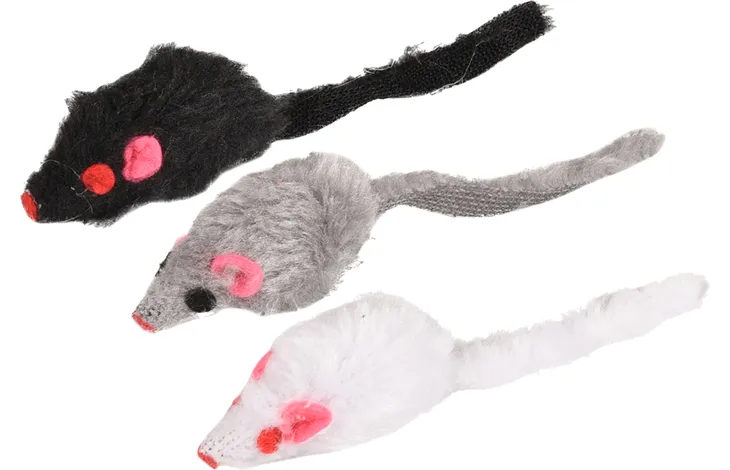 Ferplast pa5004 - играчка за котки, мишки 2 броя Малка плюшена мишка за котки Реалистичен вид Ефективен начин да поддържате котката си в добро здравословно състояние Смесени цветове