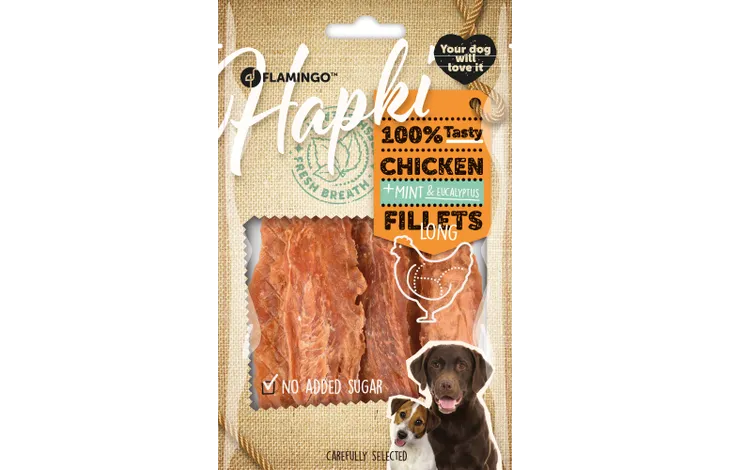 Flamingo Chick'n Snack - Лакомство за кучета с пилешки филета и мента за свеж дъх, 85 гр