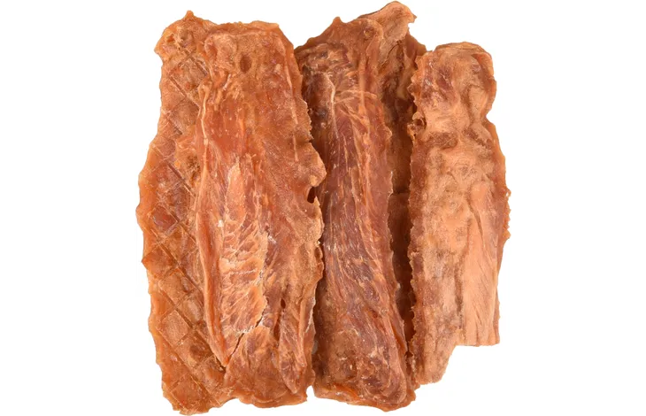100% Пилешко филе с Мента и Евкалипт за свеж дъх Вкусна добавка за Вашето куче. Осигурявайте прясна вода за пиене по всяко време. Не се препоръчва за човешка консумация. Състав: Пилешко месо: 84, 02%, картофено нишесте, глицерин, натриев хлорид, канела, магданоз, розмарин, евкалипт: 0, 08%, мента: 0, 01%, хлорофил, Вит. Е: 0, 39гр/кг. Анализ: Суров протеин-60%; сСурови влакнини-0, 3%; Сурови масла и мазнини-3%; Сурова пепел-7, 5%; Влага-18%