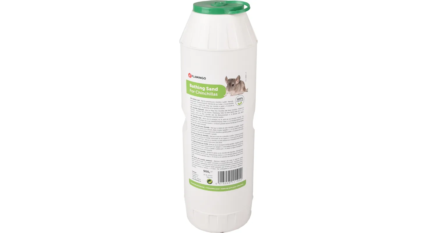 Пясъкът е важен за чинчилите, тъй като те ежедневно правят своите пясъчни бани , които спомагат за мекотата и здравето на козината им. Този специален пясък от закръглени песъчинки, действа деликатно, без да наранява нежната козина, също така абсорбира излишната влага и мазнини, които се образуват върху козината . Опаковка - 2л