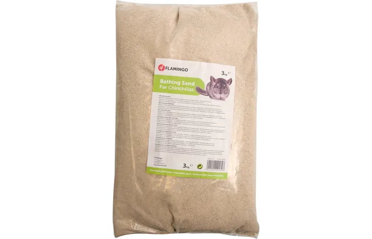 Flamingo Sand Chinchilla - Пясък за чинчила, 3 кг. - Подходящ и за гербили - Изработена от изцяло естествени съставки, тя поддържа козината на вашия домашен любимец в отлично състояние, като абсорбира маслото от кожата.