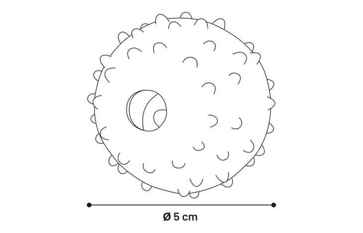 Duvo Plus - Дентална играчка за кучета във форма на топка, почистваща и масажираща венците, 5 см. Гумена играчка за куче Със скърцащ шум Полезен за зъбите и венците Здрав, издръжлив материал За часове на забавление