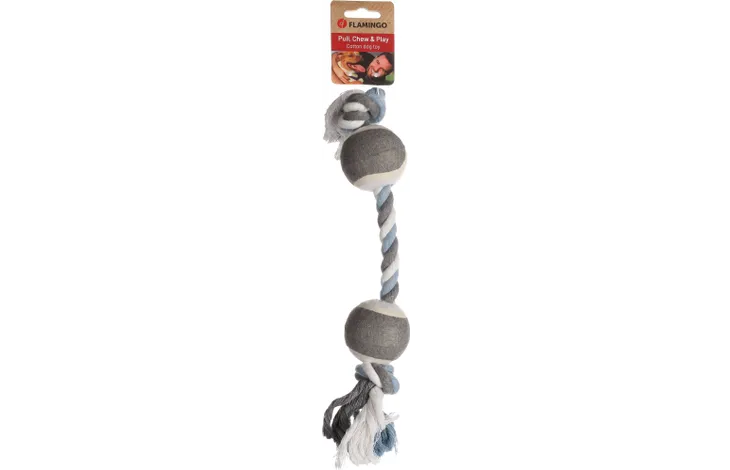 Anipro - Въжена играчка за кучета Въжена играчка за кучета с 2 възела от серия anipro play, изработена от 100% рециклиран памук в сив и оранжев цвят. Играчката е идеално решение за игри, за утоляване на естественото желание за дъвкане и за поддържане на здрави зъби и венци. · Забавна - идеална за дъвчене и игри с хвърляне или дърпане у дома и по време на разходки · Здрава – здрава, гъста плетка със серия от възели за повече здравина