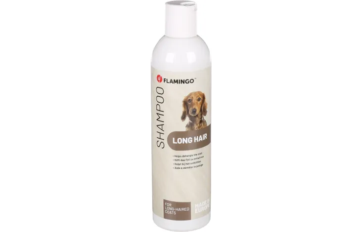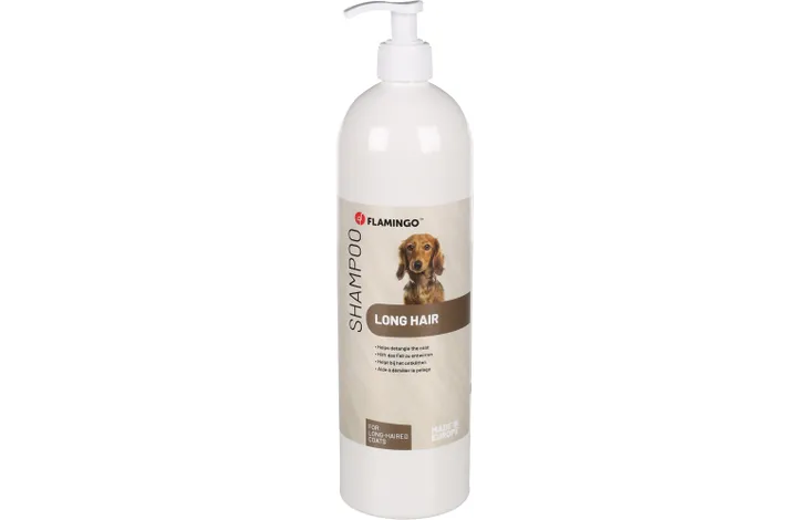 Flamingo Long Hair - Шампоан за дългокосмести кучета, 1 литър Подарете на вашия космат приятел любящата грижа, която заслужава, с нашия специален шампоан за кучета с дълга козина. Тази нежна, pH-неутрална формула хидратира и поддържа естествения блясък и мастния слой на козината. Без парабени и произведен с любов в Европа.